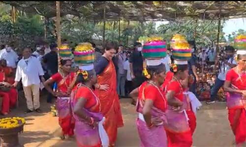 റാലികളില് പങ്കെടുത്ത പ്രിയങ്ക, പരിപാടിയില് ഒരുക്കിയ ആദിവാസികളുടെ നൃത്തത്തിനൊപ്പം ചുവടുവച്ചു. ആ വീഡിയോ കോണ്ഗ്രസ് സാമൂഹിക മാധ്യമങ്ങളില് പങ്കുവച്ചത് രംഗമായിരിക്കുകയാണ്