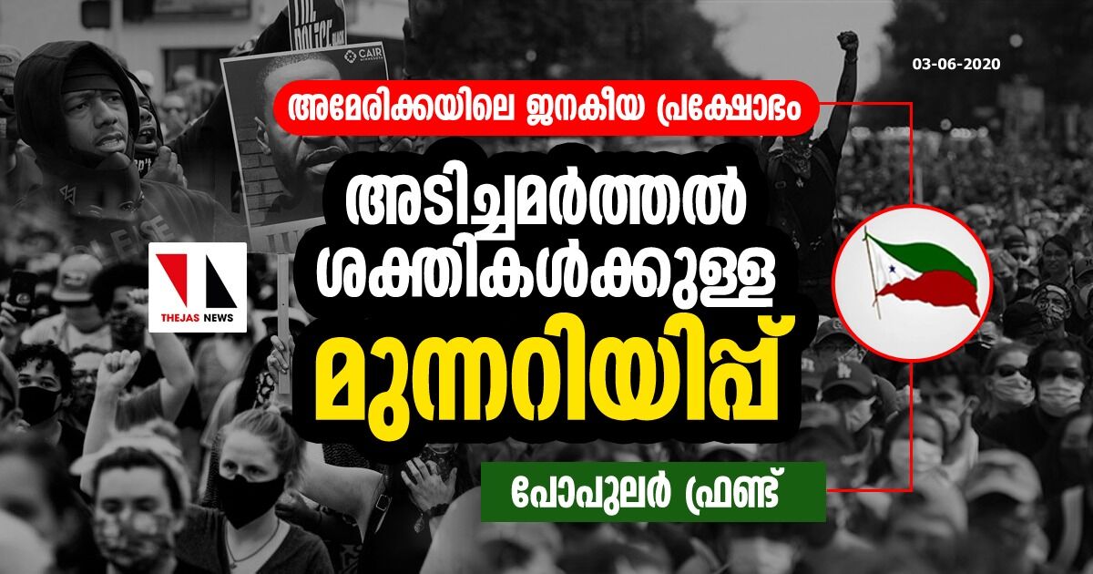 അമേരിക്കയിലെ ജനകീയ പ്രക്ഷോഭം അടിച്ചമര്ത്തല് ശക്തികള്ക്കുള്ള മുന്നറിയിപ്പ്: പോപുലര് ഫ്രണ്ട്