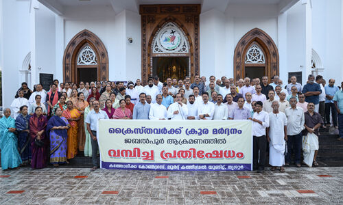 തൃശൂര്: മധ്യപ്രദേശിലെ ജബല്പൂര് രൂപതയിലെ മാണ്ഡല ഇടവക കത്തോലിക്ക വിശ്വാസികളെയും വികാരി ജനറല് ഡേവിസിനെയും പ്രോക്യൂറേറ്റര് ജോര്ജിനെയും ബജ്റംഗ് ദള് പ്രവര്ത്തകര് ആക്രമിച്ച സംഭവത്തില് ലൂര്ദ് കത്തീഡ്രല് കത്തോലിക്ക കോണ്ഗ്രസ് പ്രതിഷേധിച്ചു. ഇത്തരം സംഭവങ്ങള് മതേതരത്വത്തിനു നേരെയുള്ള വെല്ലുവിളികളാണെന്നും ആക്രമികള്ക്കെതിരെ കര്ശനമായ ശിക്ഷനടപടികള് അടിയന്തിരമായി സ്വീകരിക്കണമെന്നും യോഗം ആവശ്യപ്പെട്ടു. വികാരി ഫാ. ജോസ് വല്ലൂരാന് യോഗം ഉദ്ഘാടനം ചെയ്തു. യൂണിറ്റ് പ്രസിഡന്റ് ആന്റോ പാലത്തിങ്കല് അധ്യക്ഷത വഹിച്ച യോഗത്തില് അതിരൂപത പ്രസിഡന്റ് ഡോ ജോബി കാക്കശ്ശേരി മുഖ്യപ്രഭാഷണം നടത്തി. കൈക്കാരന്മാരായ ലൂയി കണ്ണാത്ത്, ജോസ് ചിറ്റട്ടുകാരക്കാരന്, ജോജു മഞ്ഞില, തോമസ് കോനിക്കര, ഗ്ലോബല് വൈസ് പ്രസിഡന്റ് ഡോ കെ എം ഫ്രാന്സിസ്, ഫാ പ്രജോവ് വടക്കെത്തല, ഫാ ജീസ്മോന് ചെമ്മണ്ണൂര്, ജോജു തെക്കത്ത് എന്നിവര് സംസാരിച്ചു.