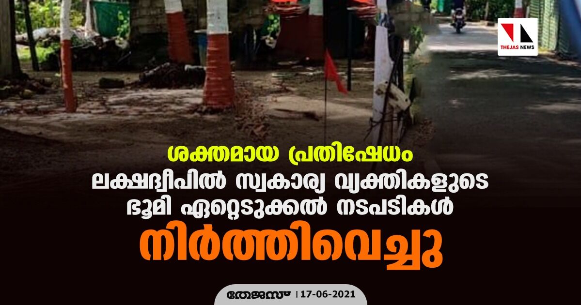 ശക്തമായ പ്രതിഷേധം; ലക്ഷദ്വീപില് സ്വകാര്യ വ്യക്തികളുടെ ഭൂമി ഏറ്റെടുക്കല് നടപടികള് നിര്ത്തിവെച്ചു