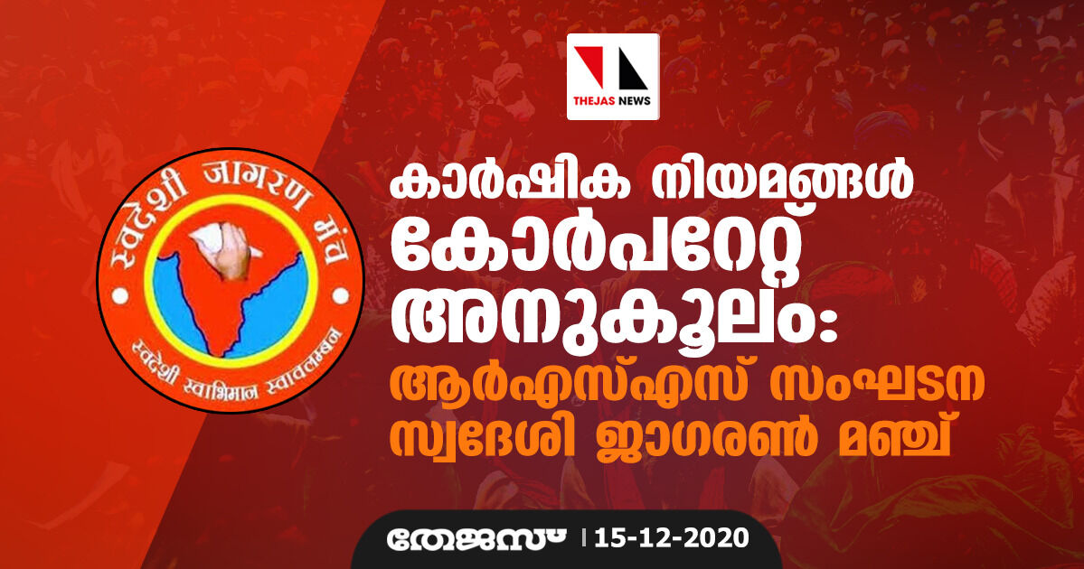 കാർഷിക നിയമങ്ങൾ കോർപറേറ്റ് അനുകൂലം: ആർഎസ്എസ് സംഘടന സ്വദേശി ജാഗരൺ മഞ്ച്