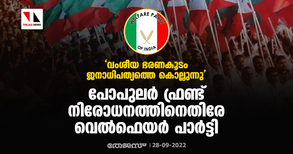 'വംശീയ ഭരണകൂടം ജനാധിപത്യത്തെ കൊല്ലുന്നു'; പോപുലർ ഫ്രണ്ട് നിരോധനത്തിനെതിരേ വെല്ഫെയര് പാര്ട്ടി