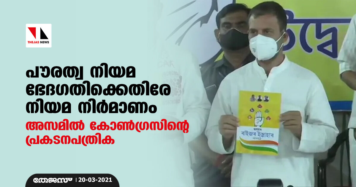 പൗരത്വ നിയമ ഭേദഗതിക്കെതിരേ നിയമ നിര്മാണം; അസമില് കോണ്ഗ്രസിന്റെ പ്രകടനപത്രിക