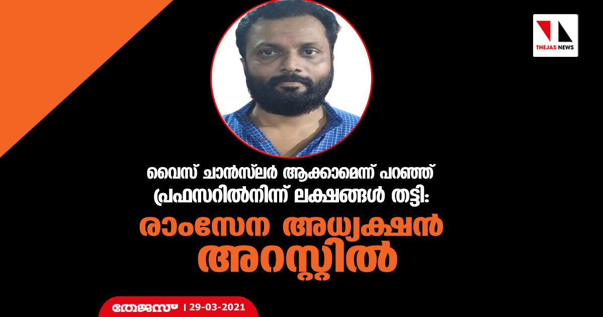 വൈസ് ചാന്സ്ലര് ആക്കാമെന്ന് പറഞ്ഞ് പ്രഫസറില്നിന്ന് ലക്ഷങ്ങള് തട്ടി: രാംസേന അധ്യക്ഷന് അറസ്റ്റില്