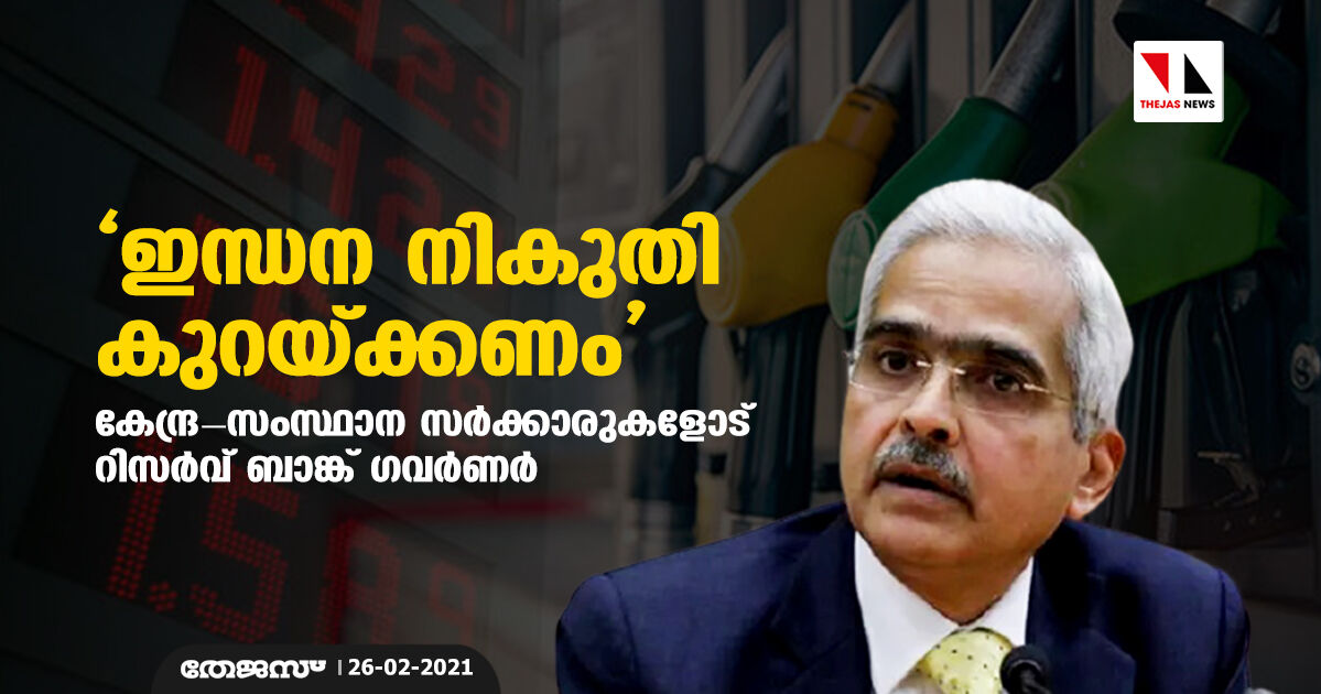 'ഇന്ധന നികുതി കുറയ്ക്കണം'; കേന്ദ്ര-സംസ്ഥാന സര്ക്കാരുകളോട് റിസര്വ് ബാങ്ക് ഗവര്ണര്