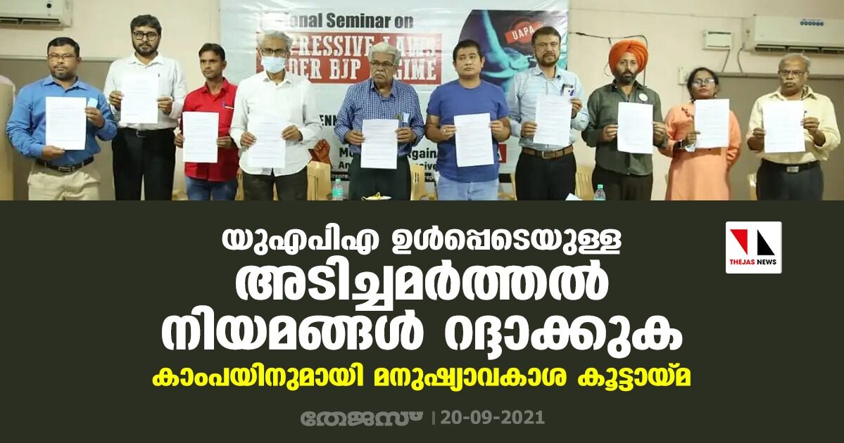 യുഎപിഎ ഉള്പ്പെടെയുള്ള അടിച്ചമര്ത്തല് നിയമങ്ങള് റദ്ദാക്കുക; കാംപയിനുമായി മനുഷ്യാവകാശ കൂട്ടായ്മ