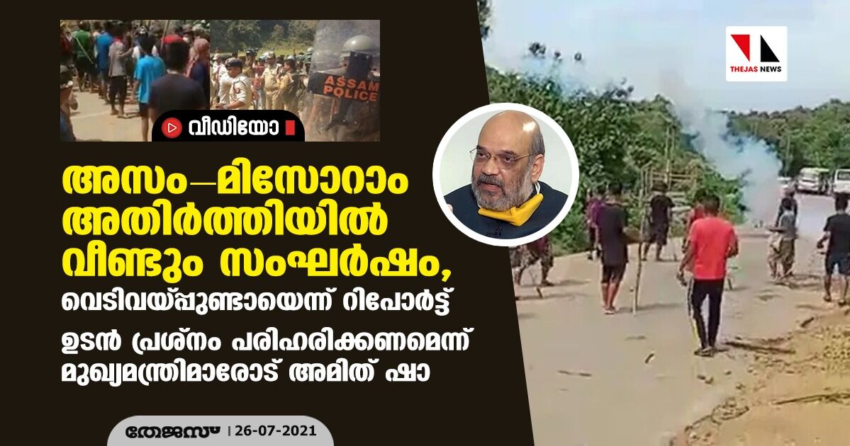 അസം- മിസോറാം അതിര്ത്തിയില് വീണ്ടും സംഘര്ഷം, വെടിവയ്പ്പുണ്ടായെന്ന് റിപോര്ട്ട്; ഉടന് പ്രശ്നം പരിഹരിക്കണമെന്ന് മുഖ്യമന്ത്രിമാരോട് അമിത് ഷാ (വീഡിയോ)