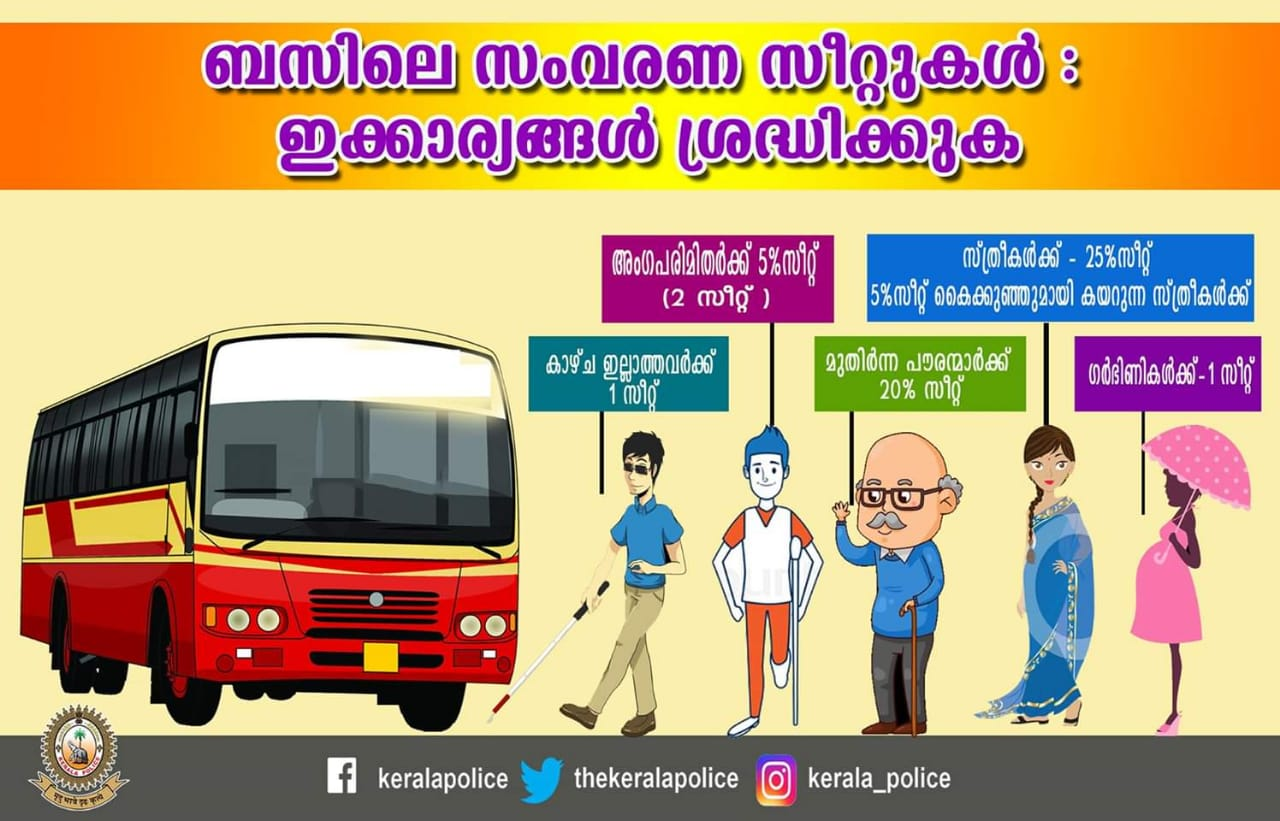 ബസിലെ സംവരണ സീറ്റുകള് ഇങ്ങനെയാണ്: