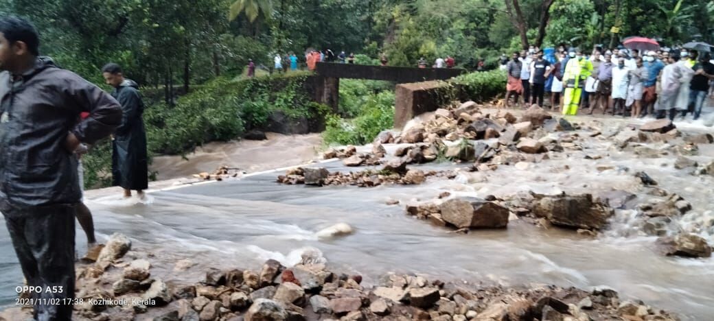 ഇന്നു വൈകീട്ടുണ്ടായ കനത്ത മഴയില് താമരശ്ശേരി താലൂക്കില് അടിവാരം പൊട്ടിക്കൈ ഭാഗത്ത് വീടുകളില് വെള്ളം കയറി. പുഴയില്നിന്ന് സമീപത്തെ വീടുകളിലേക്ക് വെള്ളം കയറുകയായിരുന്നു. മഴ ശമിച്ചതോടെ അര മണിക്കൂറിനുള്ളില് വെള്ളമിറങ്ങുകയും ചെയ്തു. ഗ്രാമപഞ്ചായത്ത് പ്രസിഡന്റ് ആയിഷക്കുട്ടി സുല്ത്താന്, തഹസില്ദാര് സി.സുബൈര് എന്നിവരുടെ നേതൃത്വത്തിലുള്ള സംഘം സ്ഥലത്തെത്തി നടപടികള് സ്വീകരിച്ചു. നിലവില് ആരെയും പ്രദേശത്ത് നിന്ന് മാറ്റി പാര്പ്പിക്കേണ്ട സാഹചര്യമില്ല.