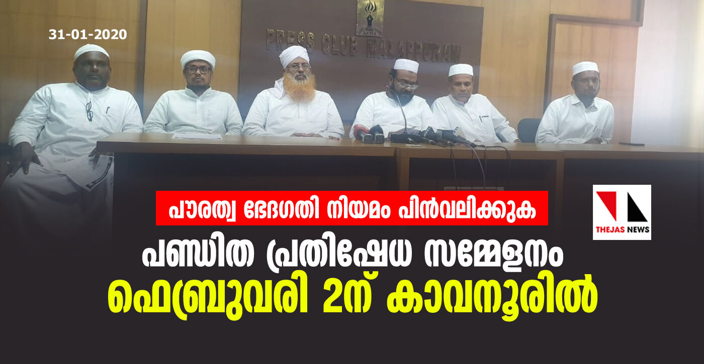 പൗരത്വ ഭേദഗതി നിയമം പിന്വലിക്കുക: പണ്ഡിത പ്രതിഷേധ സമ്മേളനം ഫെബ്രുവരി 2ന് കാവനൂരില്