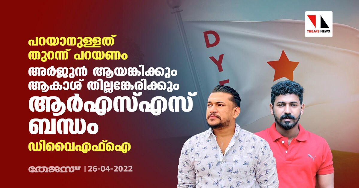 പറയാനുള്ളത് തുറന്ന് പറയണം; അര്ജുന് ആയങ്കിക്കും ആകാശ് തില്ലങ്കേരിക്കും ആർഎസ്എസ് ബന്ധം: ഡിവൈഎഫ്ഐ