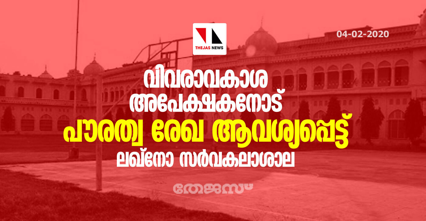 വിവരാവകാശ അപേക്ഷകനോട് പൗരത്വ രേഖകള് ആവശ്യപ്പെട്ട് ലഖ്നോ സര്വകലാശാല