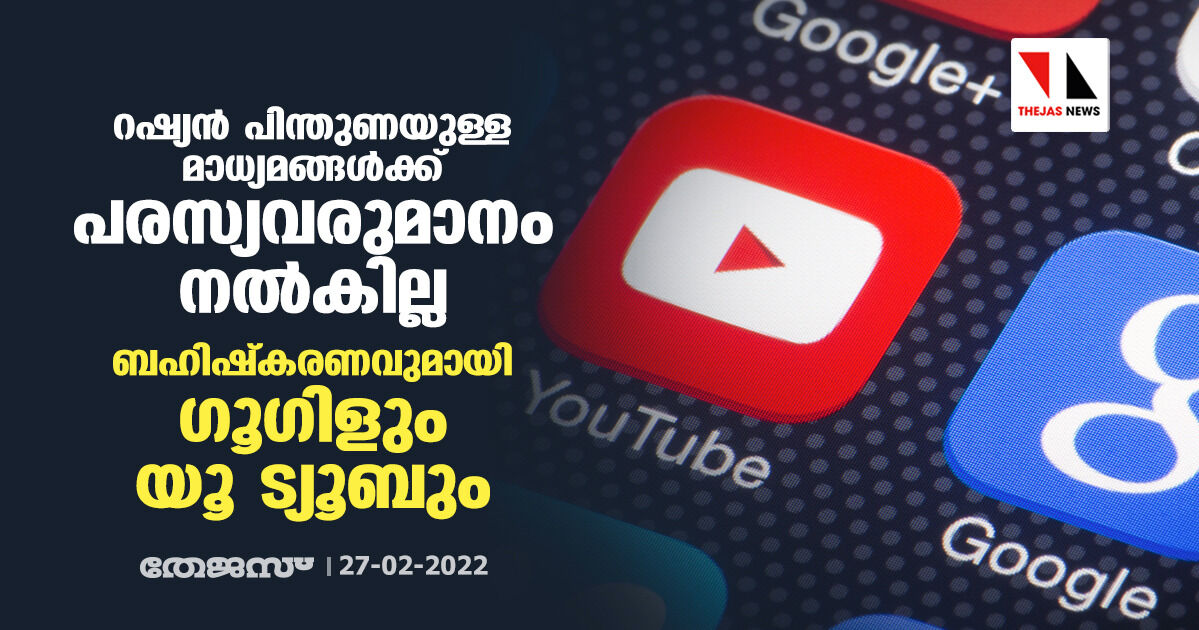 റഷ്യന് പിന്തുണയുള്ള മാധ്യമങ്ങള്ക്ക് പരസ്യവരുമാനം നല്കില്ല; ബഹിഷ്കരണവുമായി ഗൂഗിളും യൂ ട്യൂബും