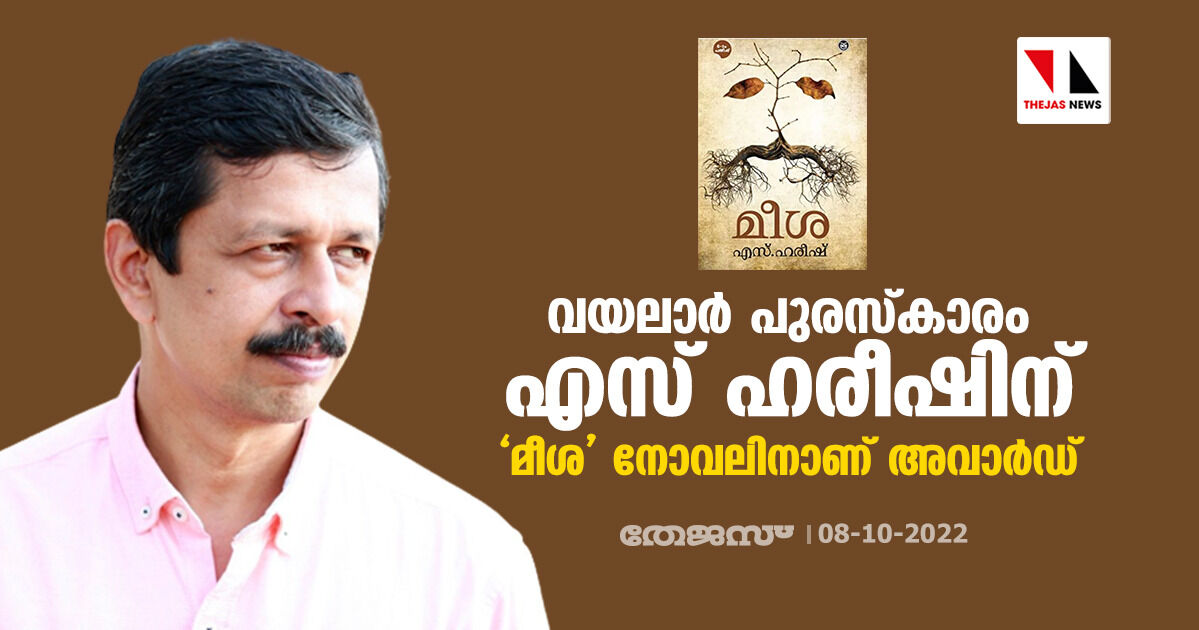 വയലാര് പുരസ്കാരം എസ് ഹരീഷിന്; 'മീശ' നോവലിനാണ് അവാര്ഡ്