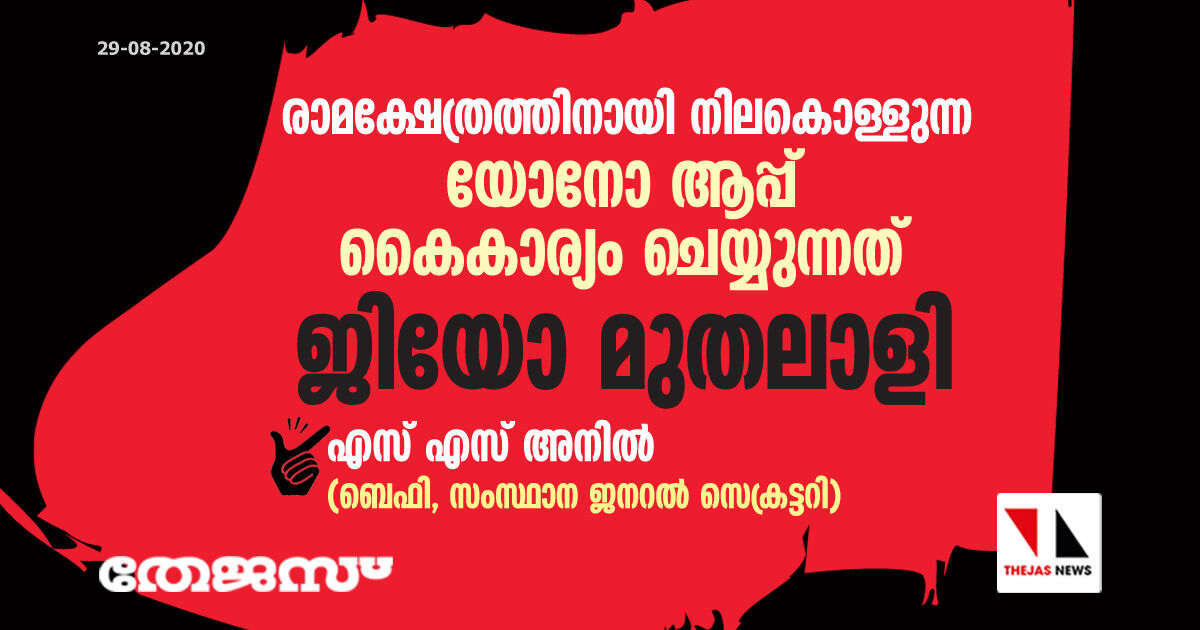 'രാമക്ഷേത്രത്തിനായി നിലകൊള്ളുന്ന യോനോ ആപ്പ് കൈകാര്യം ചെയ്യുന്നത് ജിയോ മുതലാളി'