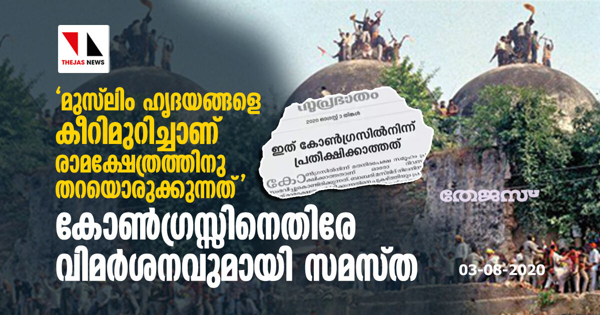 'മുസ്ലിം ഹൃദയങ്ങളെ കീറിമുറിച്ചാണ് രാമക്ഷേത്രത്തിനു തറയൊരുക്കുന്നത്'; കോണ്ഗ്രസ്സിനെതിരേ വിമര്ശനവുമായി സമസ്ത