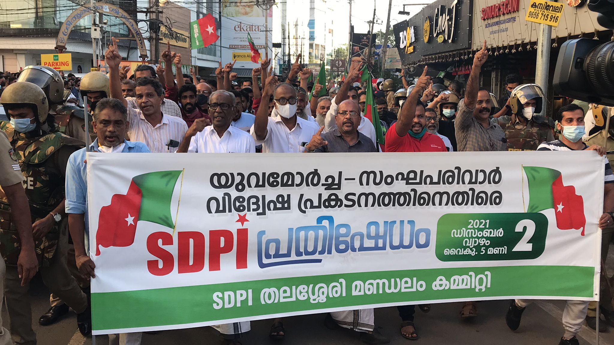 എസ്ഡിപിഐ സംഘടിപ്പിച്ച പ്രകടനത്തിന് നൂറുകണക്കിന് പേര് അണിനിരുന്നു. എസ്ഡിപി ഐ തലശ്ശേരി മണ്ഡലം കമ്മിറ്റി നടത്തിയ പ്രകടനത്തിന് ജില്ലാ പ്രസിഡന്റ് എ സി ജലാലുദ്ദീന്, ജില്ലാ കമ്മിറ്റിയംഗങ്ങളായ സി കെ ഉമര് മാസ്റ്റര്, കെ ഇബ്രാഹീം, തലശ്ശേരി മണ്ഡലം പ്രസിഡന്റ് അഡ്വ. കെ സി ഷബീര്, സെക്രട്ടറി നൗഷാദ് ബംഗ്ല എന്നിവര് നേതൃത്വം നല്കി.