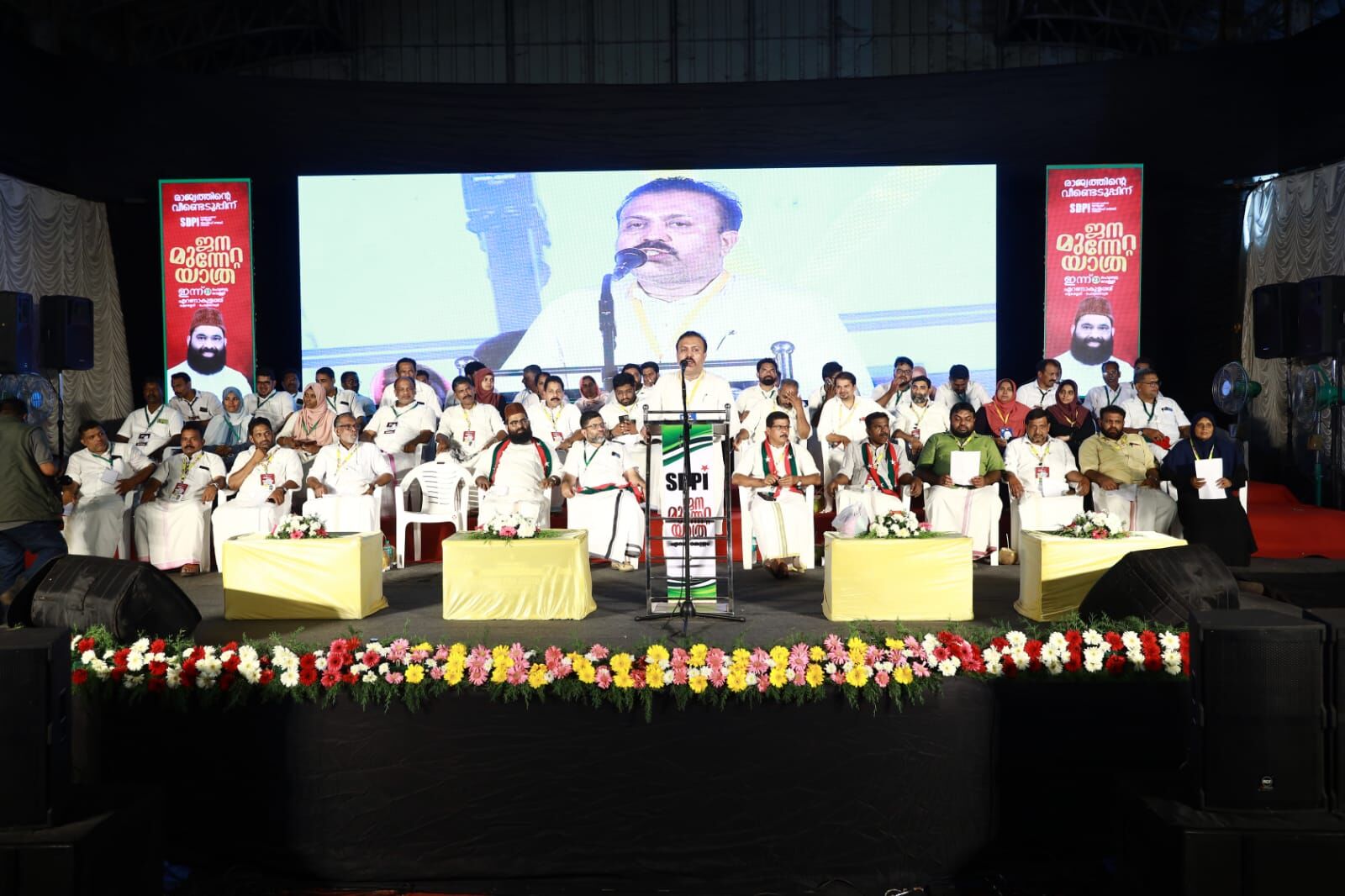 ജില്ലാ പ്രസിഡന്റ് വി കെ ഷൗക്കത്തലി അധ്യക്ഷത വഹിച്ചു. ജാഥാ ക്യാപ്ടന് മൂവാറ്റുപുഴ അഷ്റഫ് മൗലവി, സംസ്ഥാന വൈസ് പ്രസിഡന്റ് കെ കെ റൈഹാനത്ത്, ജാഥാ വൈസ് ക്യാപ്ടന് റോയ് അറയ്ക്കല്, സംസ്ഥാന ട്രഷറര് അഡ്വ. എ കെ സലാഹുദ്ദീന്, വിമന് ഇന്ത്യാ മൂവ്മെന്റ് സംസ്ഥാന പ്രസിഡന്റ് സുനിത നിസാര്, എസ്ഡിപിഐ സംസ്ഥാന പ്രവര്ത്തക സമിതിയംഗം വി എം ഫൈസല്, ജില്ല ജനറല് സെക്രട്ടറി അജ്മല് കെ മുജീബ്, ജില്ല സെക്രട്ടറി ബാബു മാത്യു സംസാരിച്ചു. ജാഥാ വൈസ് ക്യാപ്ടന് തുളസീധരന് പള്ളിക്കല്, പാര്ട്ടി സംസ്ഥാന ജനറല് സെക്രട്ടറി അജ്മല് ഇസ്മാഈല്, സംസ്ഥാന സെക്രട്ടറിമാരായ കെ കെ അബ്ദുല് ജബ്ബാര്, ജോണ്സണ് കണ്ടച്ചിറ, വിമന് ഇന്ത്യ മൂവ്മെന്റ് സംസ്ഥാന ജനറല് സെക്രട്ടറി എം ഐ ഇര്ഷാന, പെരുമ്പാവൂര് നഗരസഭാ കൗണ്സിലര് ഷമീന ഷാനവാസ്, എസ്ഡിപിഐ സംസ്ഥാന പ്രവര്ത്തക സമിതിയംഗങ്ങള്, ജില്ലാമണ്ഡലം ഭാരവാഹികള് സംബന്ധിച്ചു.