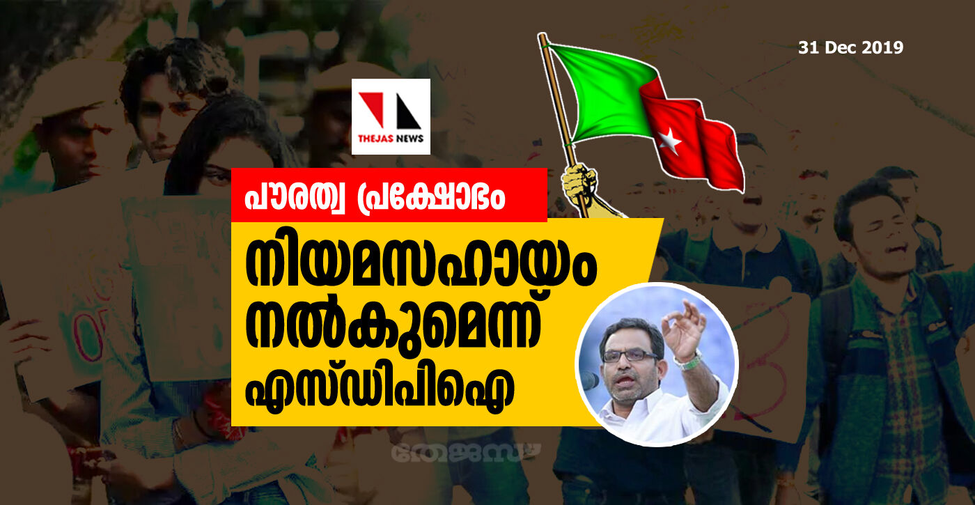 പൗരത്വ പ്രക്ഷോഭം: നിയമസഹായം നല്കുമെന്ന് എസ്ഡിപിഐ