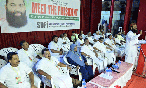 മലപ്പുറം: നിര്ഭയത്തോടെ തെരുവുകളെ സജീവമാക്കുന്ന സമരോത്സുകതയാണ് രാജ്യം തേടുന്നതെന്ന് എസ്ഡിപിഐ സംസ്ഥാന പ്രസിഡന്റ് മുവാറ്റുപുഴ അഷ്റഫ് മൗലവി. എസ്ഡിപിഐ മലപ്പുറം ജില്ലാ കമ്മിറ്റി തിരൂര് വാഗണ് ട്രാജഡി ഹാളില് സംഘടിപ്പിച്ച മീറ്റ് ദ പ്രസിഡന്റ് പരിപാടി ഉദ്ഘാടനം ചെയ്യുകയായിരുന്നു അദ്ദേഹം.