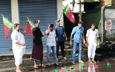 പരപ്പനങ്ങാടി: വെള്ളക്കെട്ട് രൂക്ഷമായ പരപ്പനങ്ങാടി ബീച്ച് റോഡില് കടലാസ് തോണികള് ഇറക്കി എസ്ഡിപിഐ പ്രതിഷേധം. നൂറുകണക്കിന് വിദ്യാര്ഥികളും നാട്ടുകാരും ഉപയോഗിക്കുന്ന റോഡിലെ വെള്ളക്കെട്ട് നീക്കണമെന്ന ആവശ്യത്തിന് കാലങ്ങളുടെ പഴക്കമുണ്ട്. തുടര്ന്നാണ് എസ്ഡിപിഐ പരപ്പനങ്ങാടി ബ്രാഞ്ച് കമ്മിറ്റിയുടെ നേതൃത്വത്തില് സൂചനാ സമരം ആരംഭിച്ചത്. പ്രതിഷേധ സമരത്തിന് കെ സിദ്ധീഖ് നഹ, സി പി നൗഫല്, അര്ഷാദ് തങ്ങള് എന്നിവര് നേതൃത്വം നല്കി.