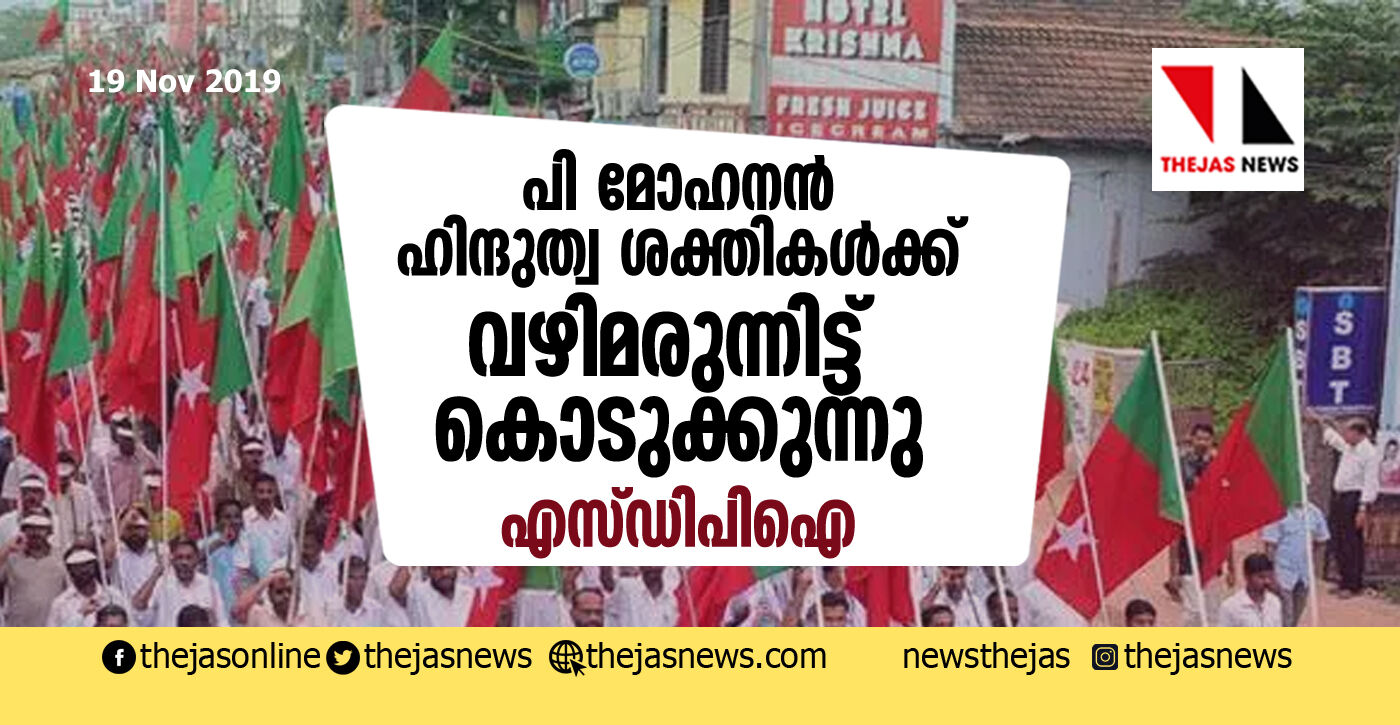 പി മോഹനന് ഹിന്ദുത്വ ശക്തികള്ക്ക് വഴിമരുന്നിട്ട് കൊടുക്കുന്നു: എസ് ഡിപിഐ