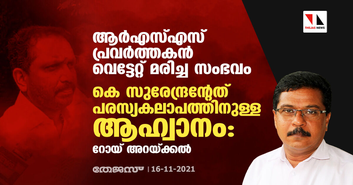 ആര്എസ്എസ് പ്രവര്ത്തകന് വെട്ടേറ്റ് മരിച്ച സംഭവം: കെ സുരേന്ദ്രന്റേത് പരസ്യകലാപത്തിനുള്ള ആഹ്വാനം:റോയ് അറയ്ക്കല്