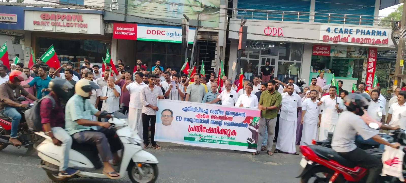 പാലക്കാട്: എസ്ഡിപിഐ ദേശീയ പ്രസിഡണ്ട് എം കെ ഫൈസിയെ ഇഡി അന്യായമായി അറസ്റ്റ് ചെയ്തതില് പ്രതിഷേധിച്ച് പട്ടാമ്പിയിലും പാലക്കാടും പ്രതിഷേധ പ്രകടനം നടത്തി. പട്ടാമ്പി കെല്ല മാര്ക്കറ്റിന് സമീപത്ത് നിന്ന് ആരംഭിച്ച പ്രതിഷേധ പ്രകടനം മേലെ പട്ടാമ്പിയിലും പാലക്കാട് താരെക്കാട് നിന്ന് തുടങ്ങിയ പ്രതിഷേധ പ്രകടനം സ്റ്റേഡിയം ബസ് സ്റ്റാന്റ് പരിസരത്തും സമാപിച്ചു. ഇരുപ്രകടനത്തിലും നൂറുകണക്കിന് പ്രവര്ത്തകര് പങ്കെടുത്തു.