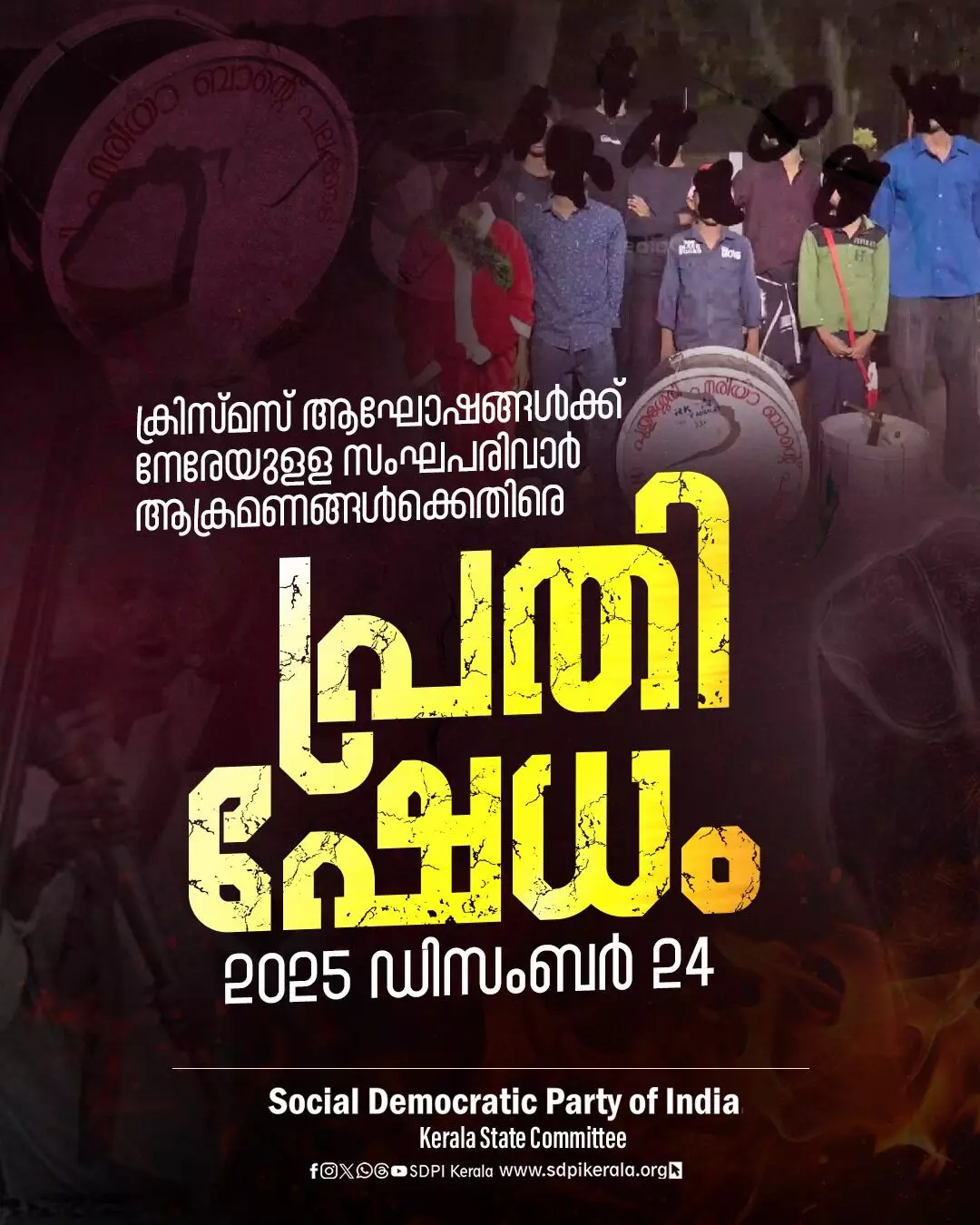 ക്രിസ്തുമസ് ആഘോഷങ്ങള്ക്കെതിരായ സംഘപരിവാര ആക്രമണം; എസ്ഡിപിഐ പ്രതിഷേധം ഇന്ന്