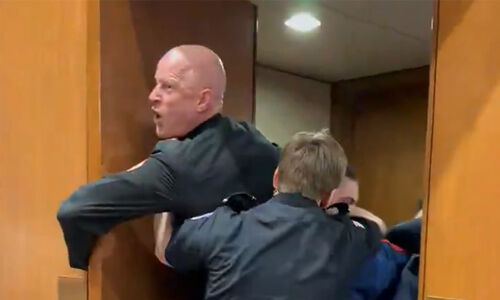 മക്ഗിന്നിസിനെ മുറിയില് നിന്ന് പുറത്താക്കാന് മൊണ്ടാനയില് നിന്നുള്ള സെനറ്ററും യുഎസ് വെറ്ററനുമായ ടിം ഷീഹി, സുരക്ഷാ ഉദ്യോഗസ്ഥരെ സഹായിക്കുന്നത് വീഡിയോ ക്ലിപ്പില് കാണാം.
