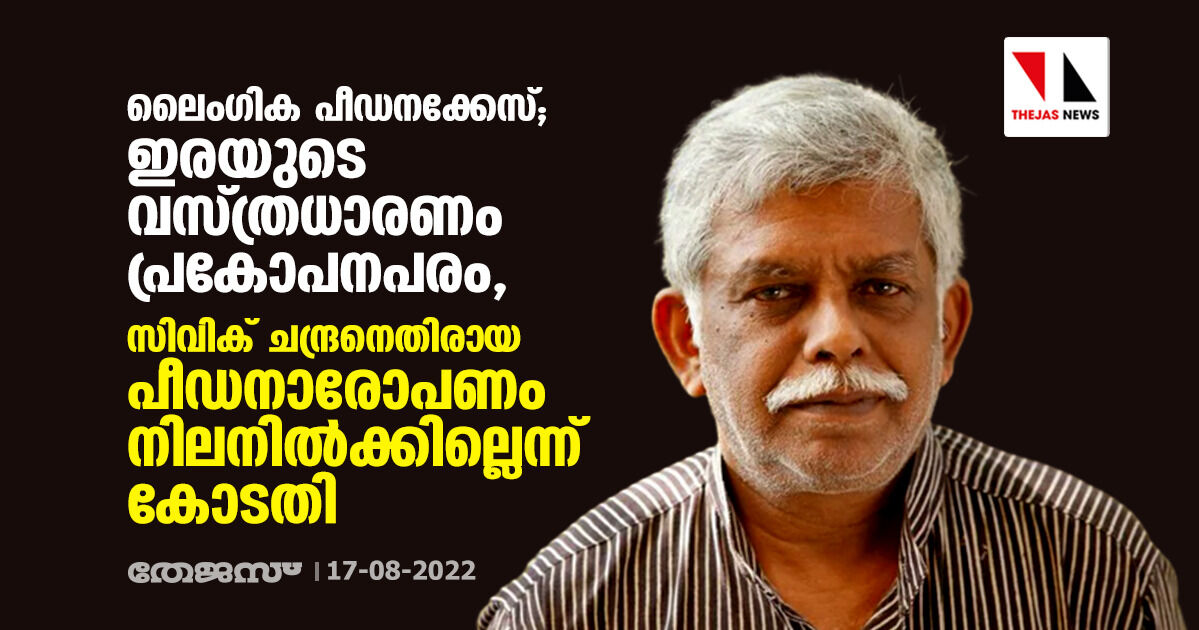 ലൈംഗിക പീഡനക്കേസ്;ഇരയുടെ വസ്ത്രധാരണം പ്രകോപനപരം,സിവിക് ചന്ദ്രനെതിരായ പീഡനാരോപണം നിലനില്ക്കില്ലെന്ന് കോടതി