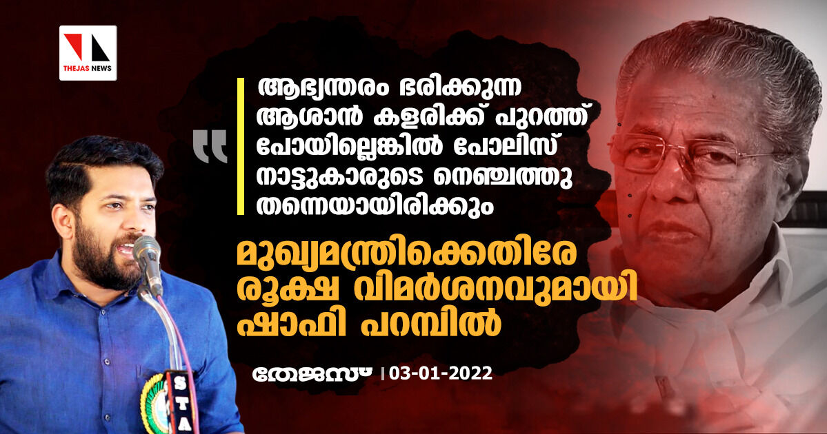 ആഭ്യന്തരം ഭരിക്കുന്ന ആശാന് കളരിക്ക് പുറത്ത് പോയില്ലെങ്കില് പോലിസ് നാട്ടുകാരുടെ നെഞ്ചത്തു തന്നെയായിരിക്കും:മുഖ്യമന്ത്രിക്കെതിരേ രൂക്ഷ വിമര്ശനവുമായി ഷാഫി പറമ്പില്