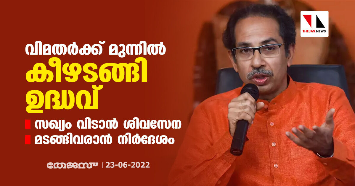 വിമതര്ക്ക് മുന്നില് കീഴടങ്ങി ഉദ്ധവ്; സഖ്യം വിടാന് ശിവസേന, മടങ്ങിവരാന് നിര്ദേശം