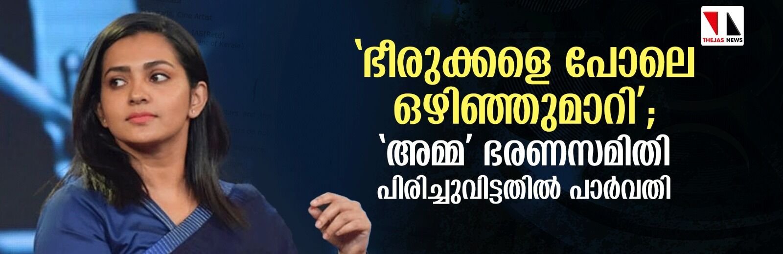 'ഭീരുക്കളെ പോലെ ഒഴിഞ്ഞുമാറി'; 'അമ്മ'യ്ക്കെതിരേ രൂക്ഷവിമര്ശനവുമായി പാര്വതി