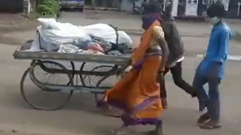 കൊവിഡ് ഭീതിയില് ബന്ധുക്കള് കയ്യൊഴിഞ്ഞു; ഭര്ത്താവിന്റെ മൃതദേഹം ഉന്തുവണ്ടിയില് ശ്മശാനത്തിലെത്തിക്കാന് നിര്ബന്ധിതയായി വീട്ടമ്മ