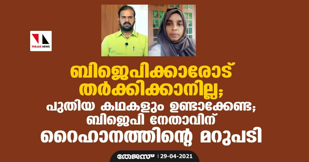 ബിജെപിക്കാരോട് തര്ക്കിക്കാനില്ല; പുതിയ കഥകളും ഉണ്ടാക്കേണ്ട; ബിജെപി നേതാവിന് റൈഹാനത്തിന്റെ മറുപടി