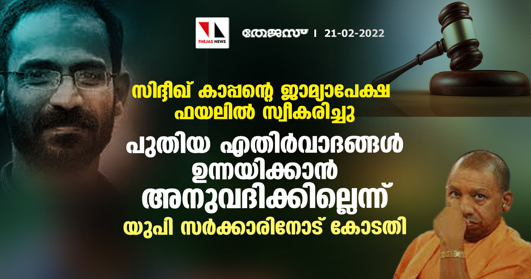 സിദ്ദീഖ് കാപ്പന്റെ ജാമ്യാപേക്ഷ ഫയലില് സ്വീകരിച്ചു; പുതിയ എതിര്വാദങ്ങള് ഉന്നയിക്കാന് അനുവദിക്കില്ലെന്ന് യുപി സര്ക്കാരിനോട് കോടതി