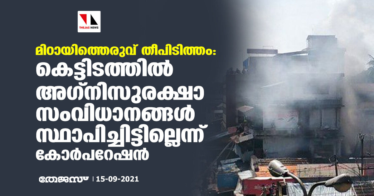 മിഠായിത്തെരുവ് തീപിടിത്തം: കെട്ടിടത്തിൽ അഗ്നിസുരക്ഷാ സംവിധാനങ്ങൾ സ്ഥാപിച്ചിട്ടില്ലെന്ന് കോർപറേഷൻ