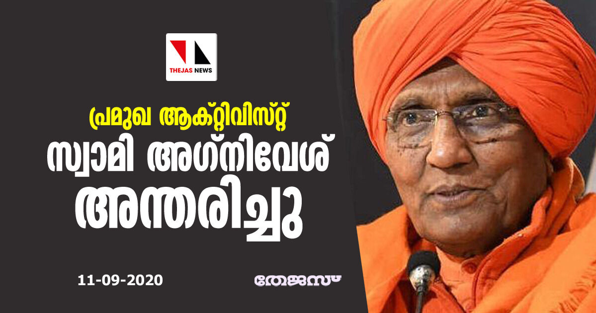 പ്രമുഖ ആക്റ്റിവിസ്റ്റ് സ്വാമി അഗ്നിവേശ് അന്തരിച്ചു