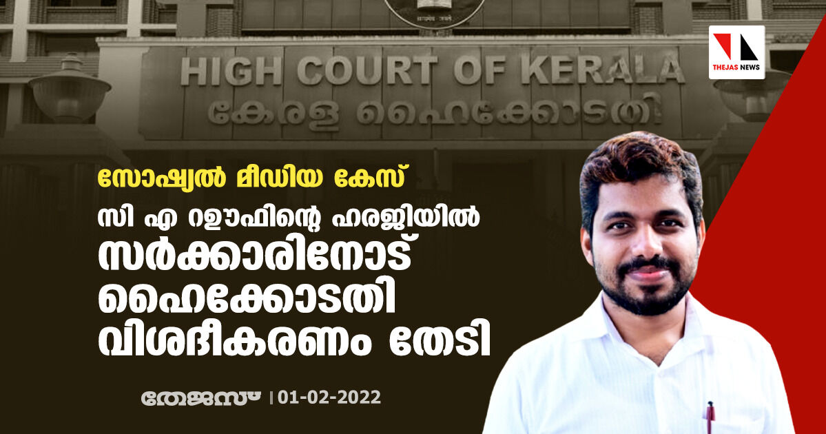 സോഷ്യല് മീഡിയ കേസ്: സി എ റഊഫിന്റെ ഹരജിയില് സര്ക്കാരിനോട് ഹൈക്കോടതി വിശദീകരണം തേടി
