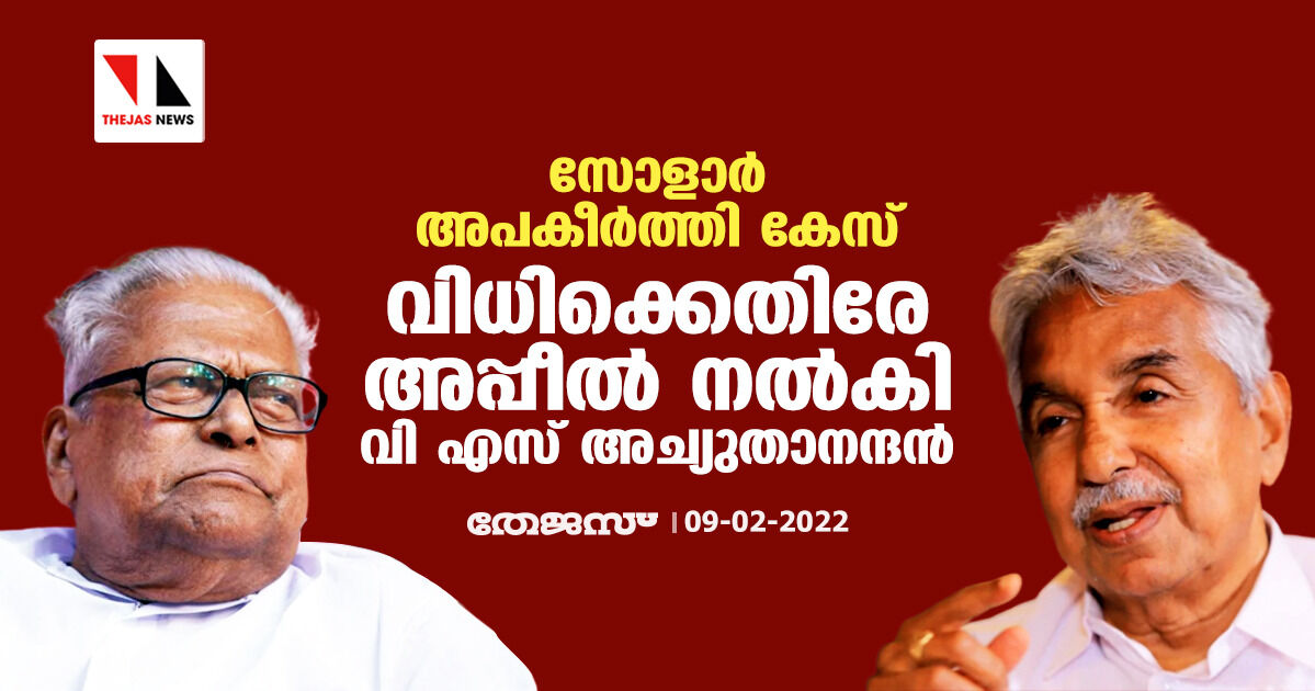 സോളാര് അപകീര്ത്തി കേസ്; വിധിക്കെതിരേ അപ്പീല് നല്കി വി എസ് അച്യുതാനന്ദന്