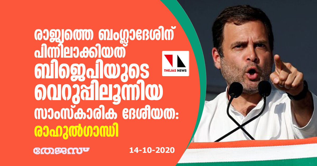 രാജ്യത്തെ ബംഗ്ലാദേശിന് പിന്നിലാക്കിയത് ബിജെപിയുടെ വെറുപ്പിലൂന്നിയ സാംസ്കാരിക ദേശീയത: രാഹുല്ഗാന്ധി