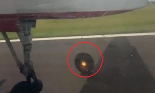 ടേക്ക് ഓഫിനിടെ വിമാനത്തിന്റെ ചക്രം ഊരിത്തെറിച്ചു(വീഡിയോ)