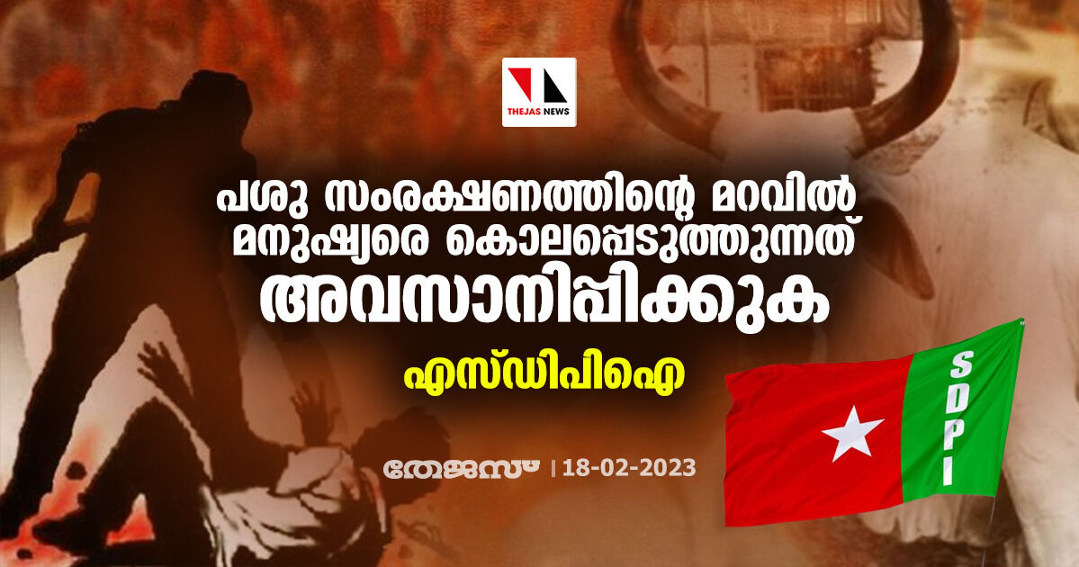 പശു സംരക്ഷണത്തിന്റെ മറവില് മനുഷ്യരെ കൊലപ്പെടുത്തുന്നത് അവസാനിപ്പിക്കുക: എസ്ഡിപിഐ