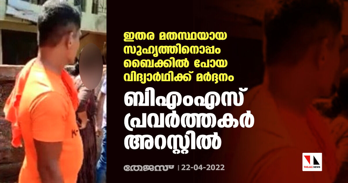 ഇതര മതസ്ഥയായ സുഹൃത്തിനൊപ്പം ബൈക്കില് പോയ വിദ്യാര്ഥിക്ക് മര്ദ്ദനം; ബിഎംഎസ് പ്രവര്ത്തകര് അറസ്റ്റില്