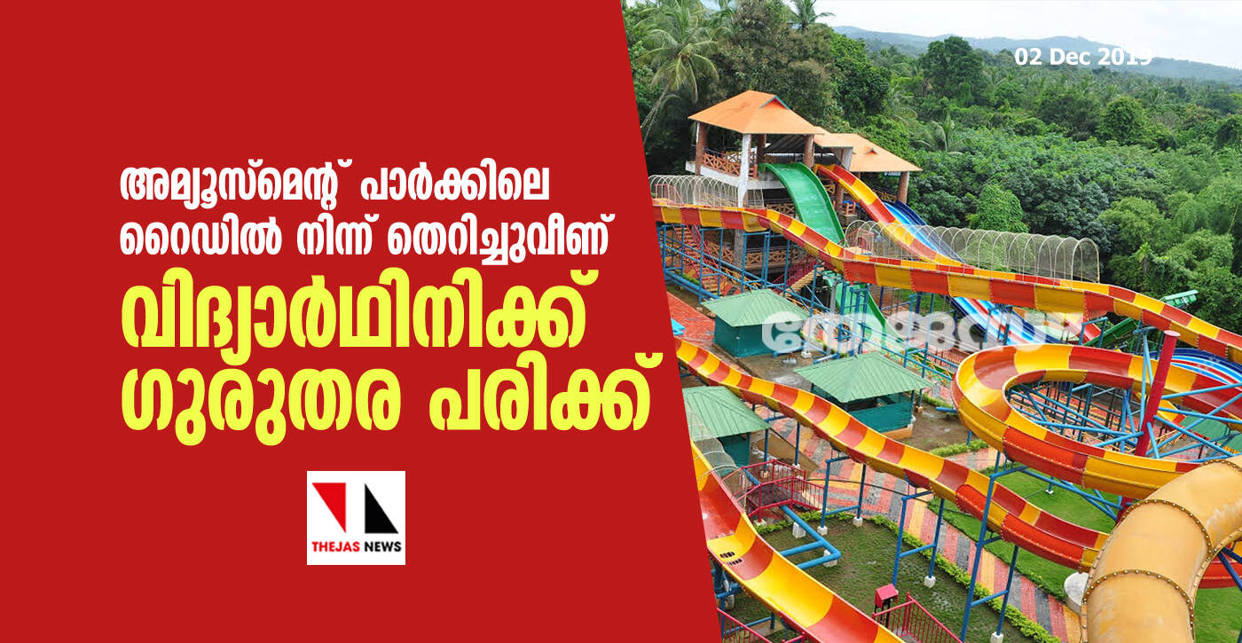 അമ്യൂസ്മെന്റ് പാര്ക്കിലെ റൈഡില് നിന്ന് തെറിച്ചുവീണ് വിദ്യാര്ഥിനിക്ക് ഗുരുതര പരിക്ക്