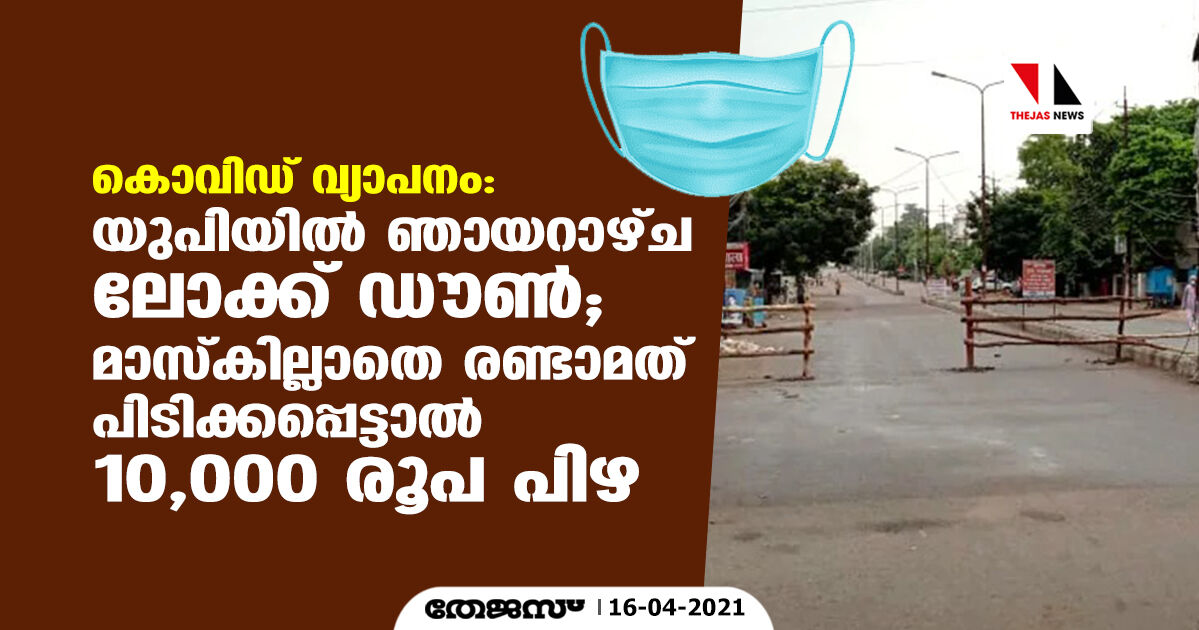 കൊവിഡ് വ്യാപനം: യുപിയില് ഞായറാഴ്ച ലോക്ക് ഡൗണ്; മാസ്കില്ലാതെ രണ്ടാമത് പിടിക്കപ്പെട്ടാല് 10,000 രൂപ പിഴ