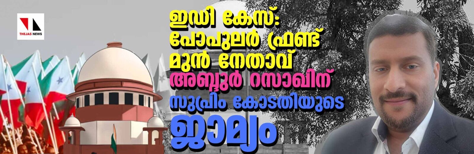 പോപുലര് ഫ്രണ്ട് മുന് നേതാവ് അബ്ദുര് റസാഖിന് ഇഡി കേസില് സുപ്രിം കോടതിയുടെ ജാമ്യം