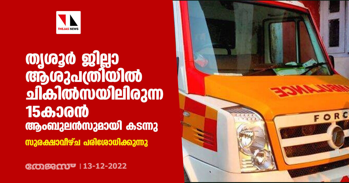 തൃശൂര് ജില്ലാ ആശുപത്രിയില് ചികില്സയിലിരുന്ന 15കാരന് ആംബുലന്സുമായി കടന്നു; സുരക്ഷാവീഴ്ച പരിശോധിക്കുന്നു