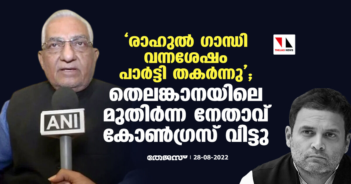 'രാഹുല് ഗാന്ധി വന്നശേഷം പാര്ട്ടി തകര്ന്നു'; തെലങ്കാനയിലെ മുതിര്ന്ന നേതാവ് കോണ്ഗ്രസ് വിട്ടു